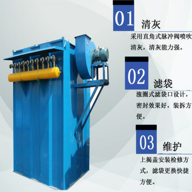 单机脉冲除尘器是目前深受市场欢迎的小型袋收尘器。这种小型袋式收尘器经济实用;结构简单紧凑,安装容易,维修方便(外滤式)主要用于库顶、库底、仓顶及各种输送机等排放和扬尘点收尘,该机采用涤纶布袋,入口温度<120℃除尘效果达99.8%。如有用途可提供耐温,滤料的单机袋收尘器。