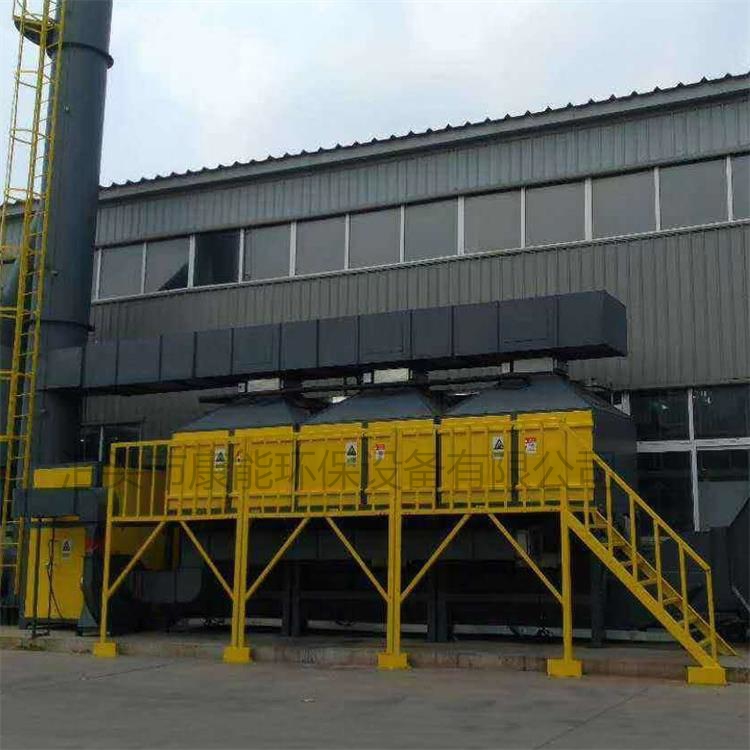 2、箱子在线型催化燃烧设备工作时,其中2个吸附箱处于吸附状态,1个吸附箱处于备用状态。当需要进行脱附时,备用的箱体进入吸附状态,替换掉一个需要脱附的箱体,单独进行脱附。该箱体脱附完成后用以替换另一个需要脱附的箱体,从而实现活性炭箱体一直有2个处在吸附状态,保持对废气的24小时在线处理。