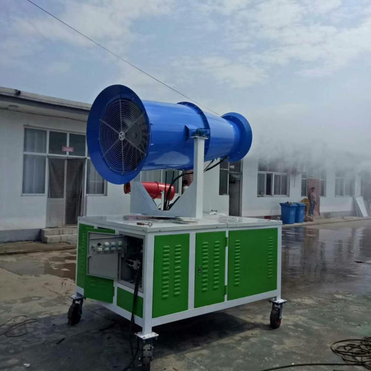 除尘雾炮机/降尘雾炮机是我公司根据风送原理,先使用高压泵、微细雾化喷嘴将水化,再利用风机风量和风压将雾化后的水雾送到较远距离,使得水雾到达较远距离同时能够覆盖 大面积,水雾与粉尘凝结后降落,从而达到降尘目的。